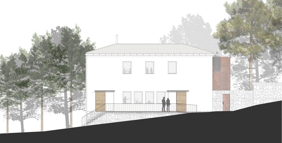 La intervención sobre la edificación existente precisa la conservación de la volumetría exterior, pero se transforma estéticamente adecuando la fachada al uso de materiales diversos dotando al edificio de un lenguaje más contemporáneo.